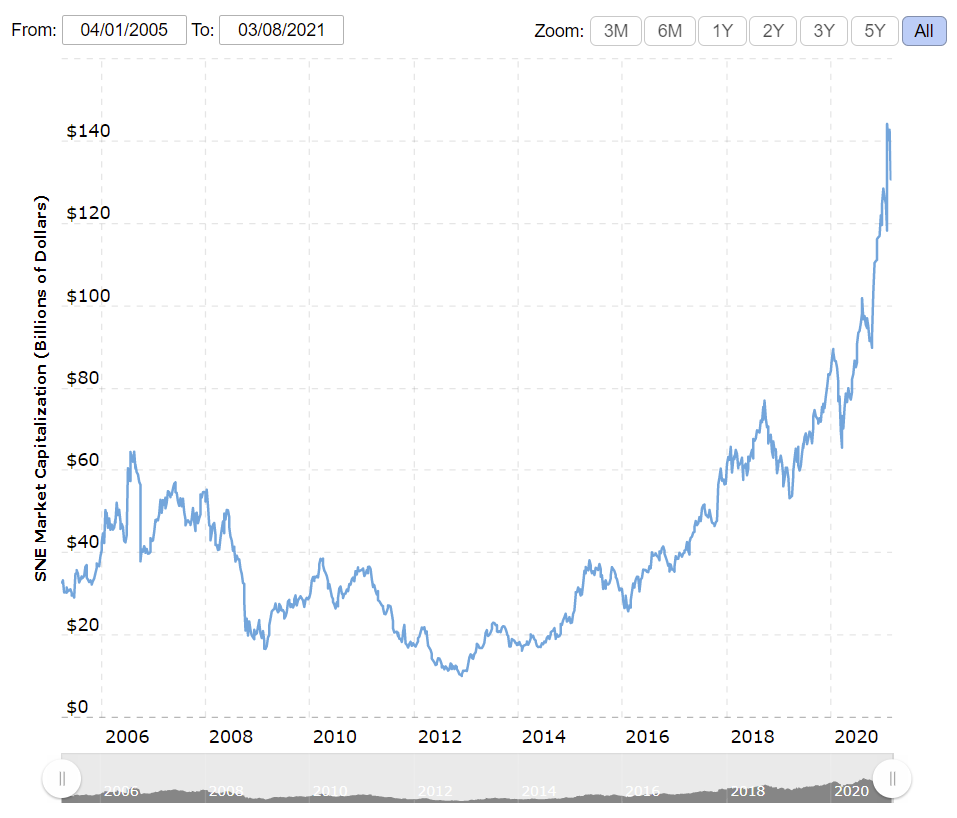 결국 소니는 2012년 11월 말, 국제 신용평사가 피치에서 신용등급을 투자부적격이 되면서 다시 한 번 주가가 폭락하기 시작합니다. 소니는 5년동안 계속 적자를 맛 보게됩니다.