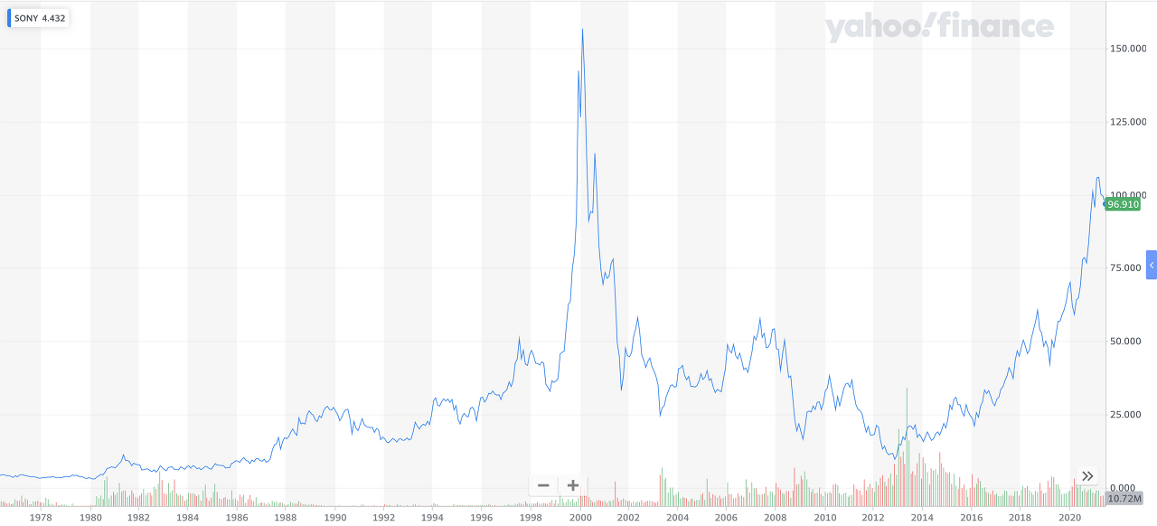 1987년 4대 CEO 오가 노리오가 취임을 하게 됩니다. 이 때 "기술은 소니가 다 재패했으니, 컨텐츠를 만들 차례다."라는 결정을 내리게 되었고 cbs 레코드를 인수해 소니 뮤직으로, 콜롬비아 픽쳐스를 인수해 소니 픽쳐스로 만듭니다.